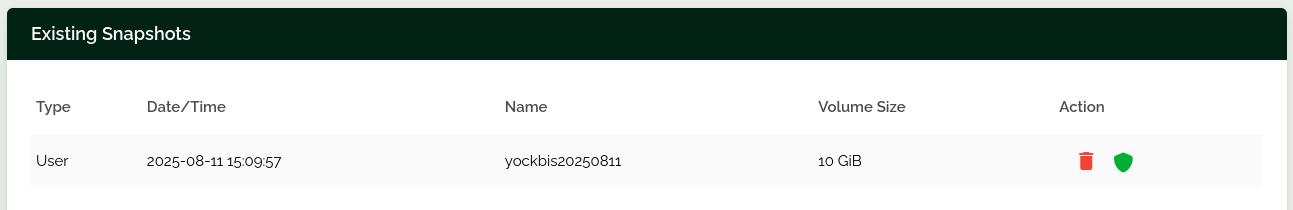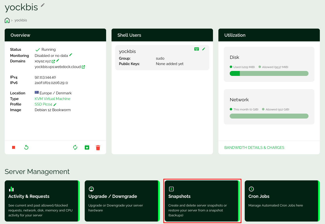 Cliquer sur le VPS yockbis et dans Server Management sur Snapshots