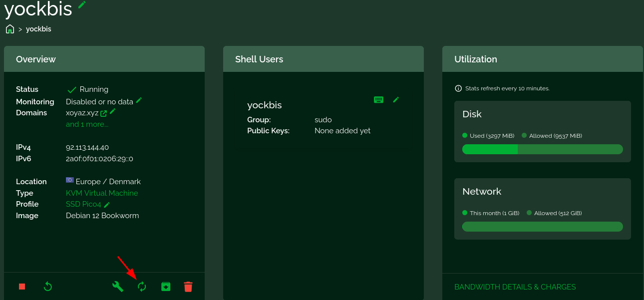 Se connecter sur un terminal web (https://webdock.io/en/dash/webssh/yockbis/yockbis)