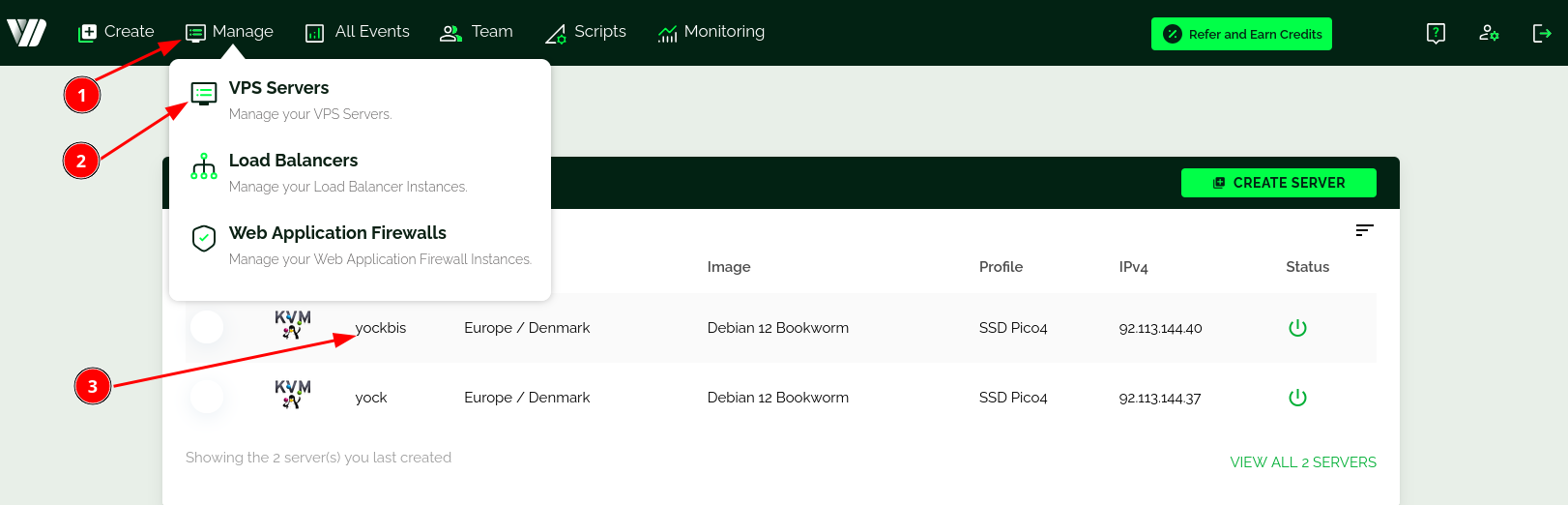 Se connecter sur son compte à l’adresse https://webdock.io