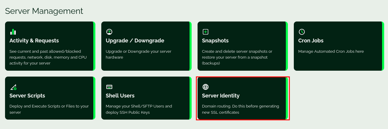 Aller dans la rubrique Manage Server Identity
