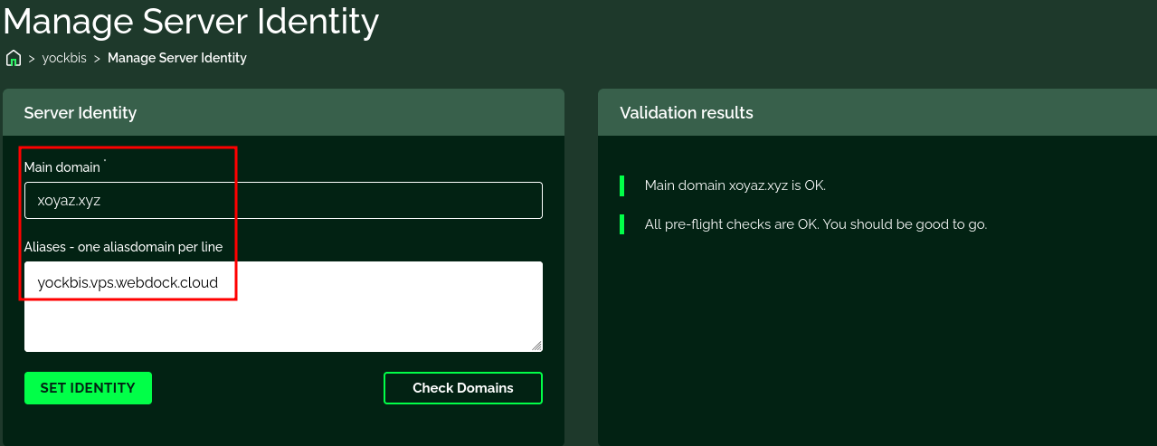 Dans “Main domain” on saisit xoyaz.xyz (fournisseur domaine doit être opérationnel)