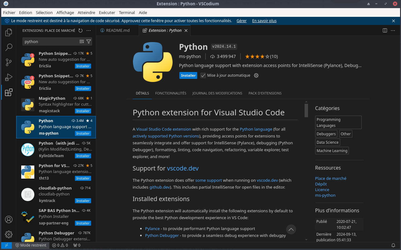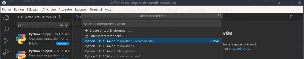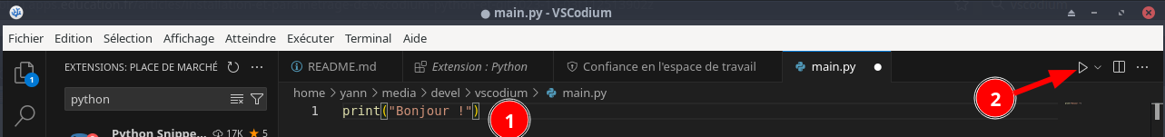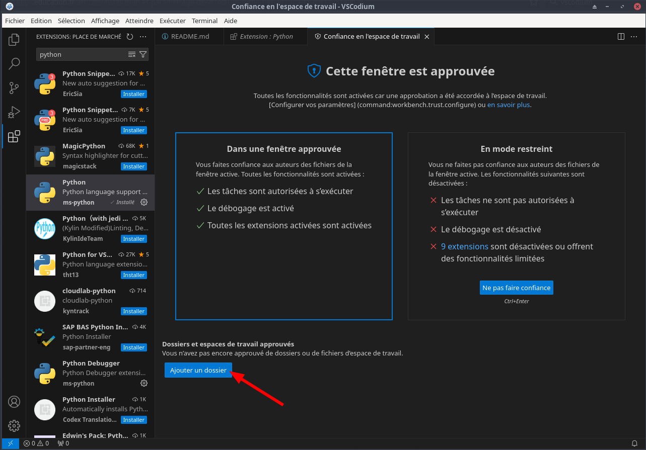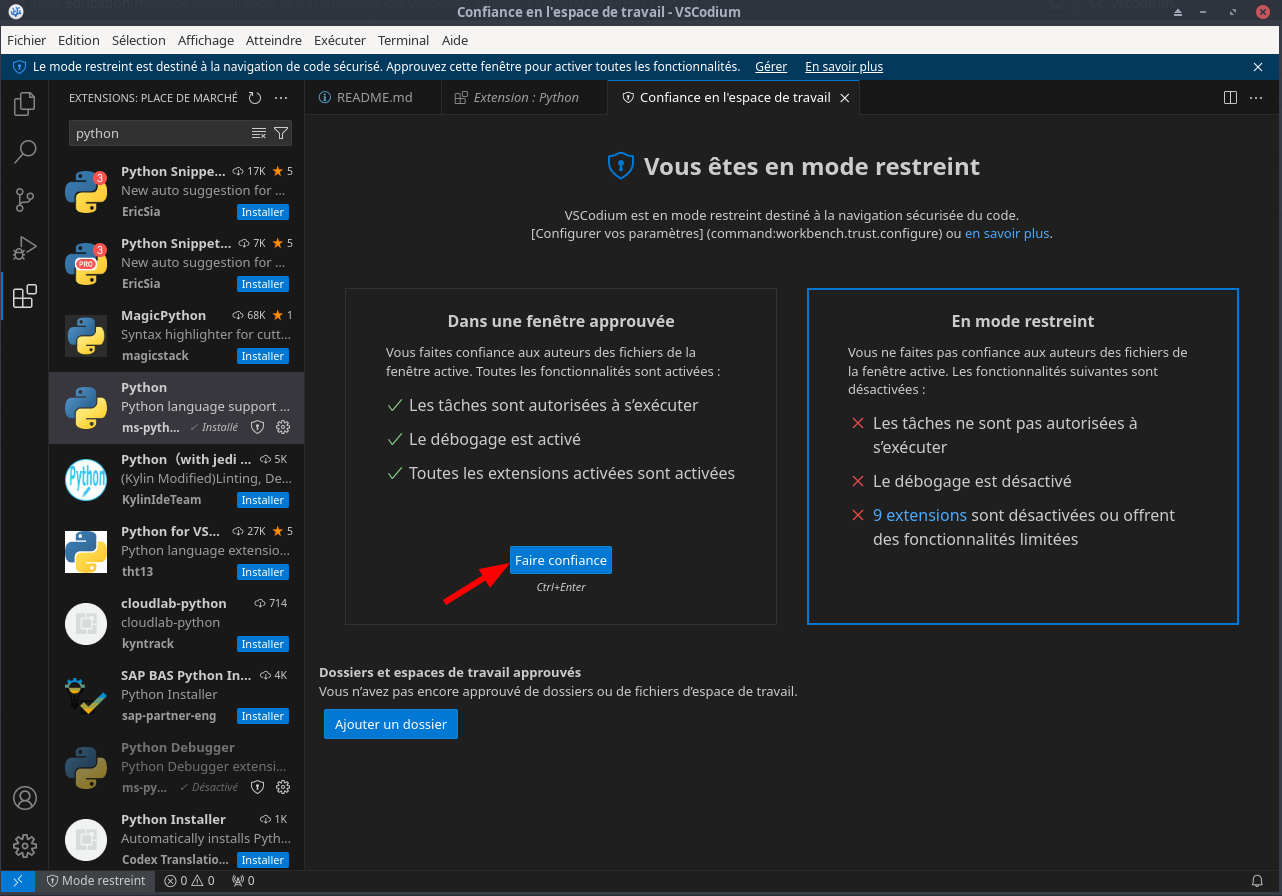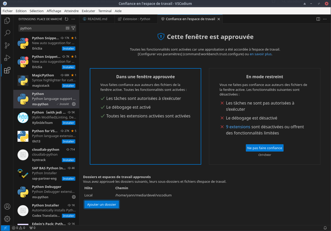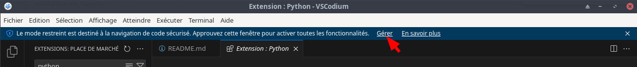 Première utilisation de VSCodium