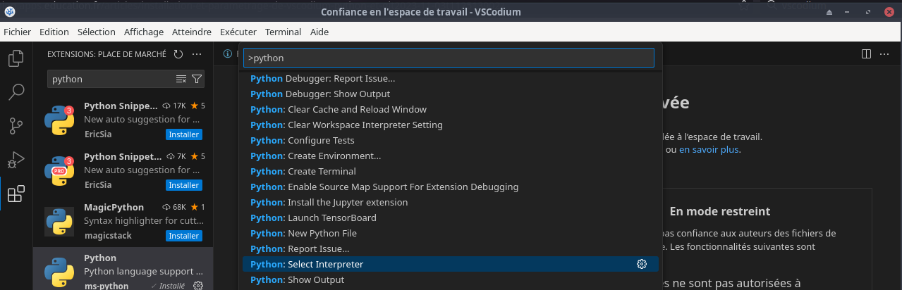 Pour mettre VSCodium en français
