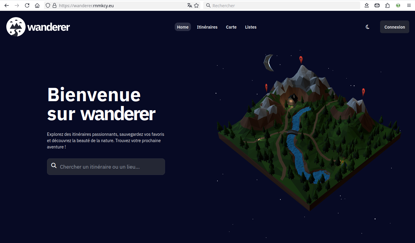 Remplacer http://localhost:3000 par https://wanderer.rnmkcy.eu dans la variable ORIGIN du fichier docker-compose.yml