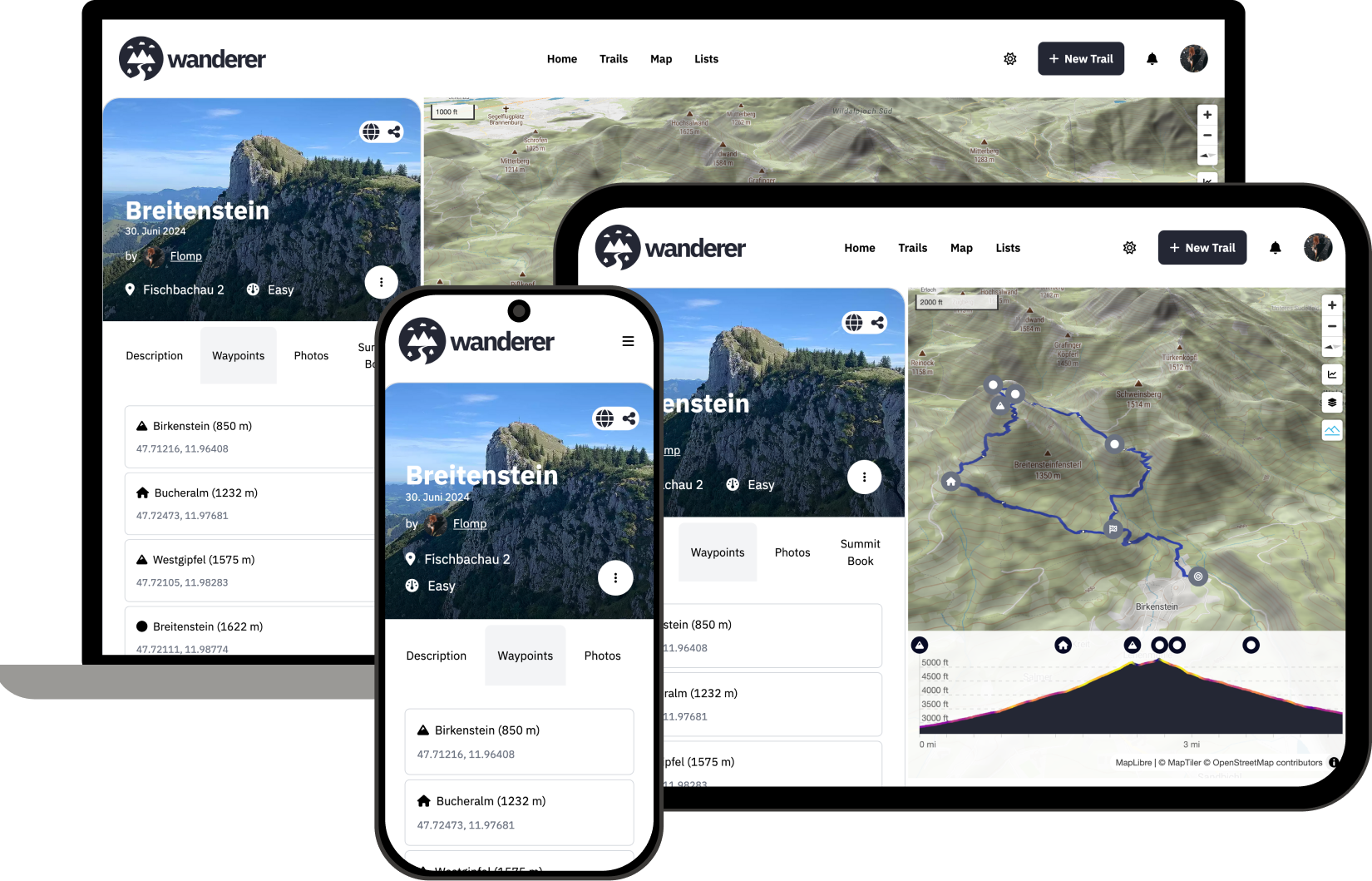 wanderer est une base de données auto-organisé. Vous pouvez télécharger vos traces GPS enregistrées ou en créer de nouvelles et ajouter diverses métadonnées pour créer un catalogue facilement consultable.