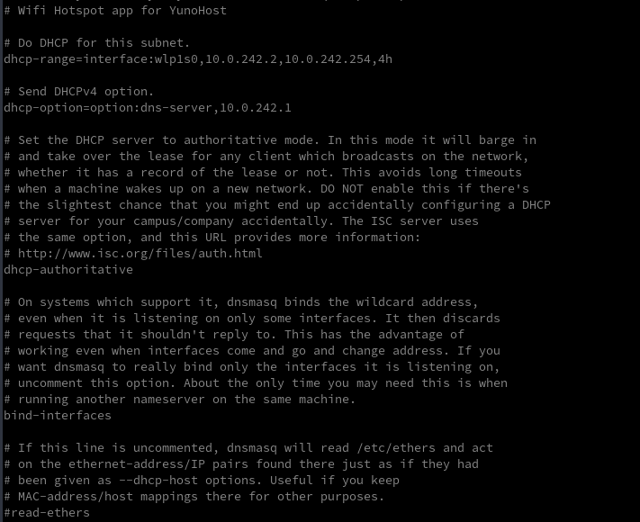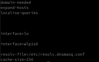 au fichier /etc/dnsmasq.conf et redémarrer le service sudo systemctl restart dnsmasq