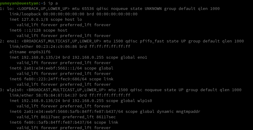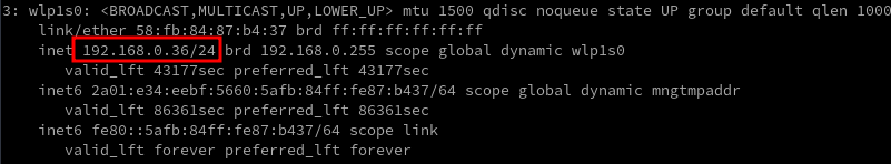 Votre interface sans fil dispose désormais d’une adresse IP privée, qui peut être affichée à l’aide de la commande suivante : ip addr show wlp4s0