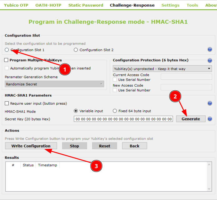 Challenge Response HMAC SHA1 sur le slot 1