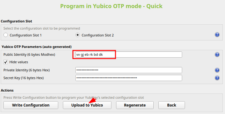 - Cliquez sur Upload to Yubico.