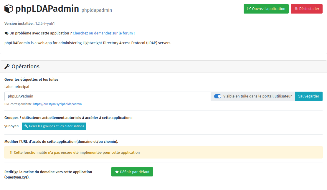 DN de conexion : uid=yunoyan,ou=users,dc=yunohost,dc=org