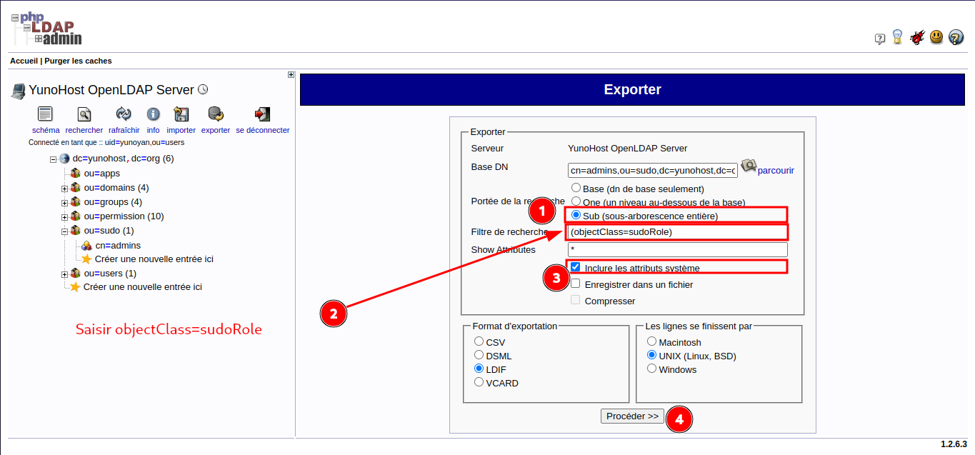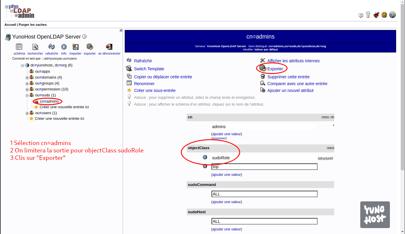 Extraire la branche cn=admins de la base ldap au format de fichier ldif avec PhpLdapAdmin