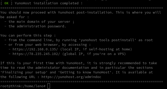 yunohost tools postinstall