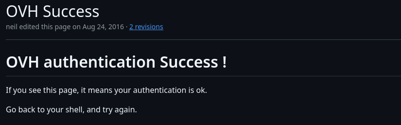 Premier passage, il faut ouvrir le lien pour valider la DNS OVH
