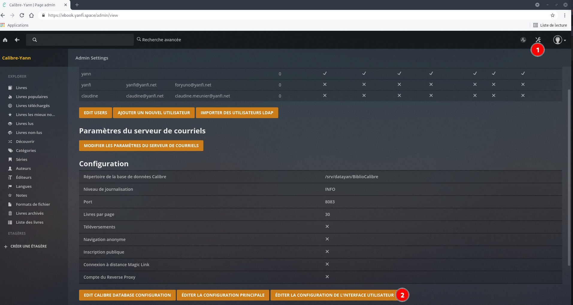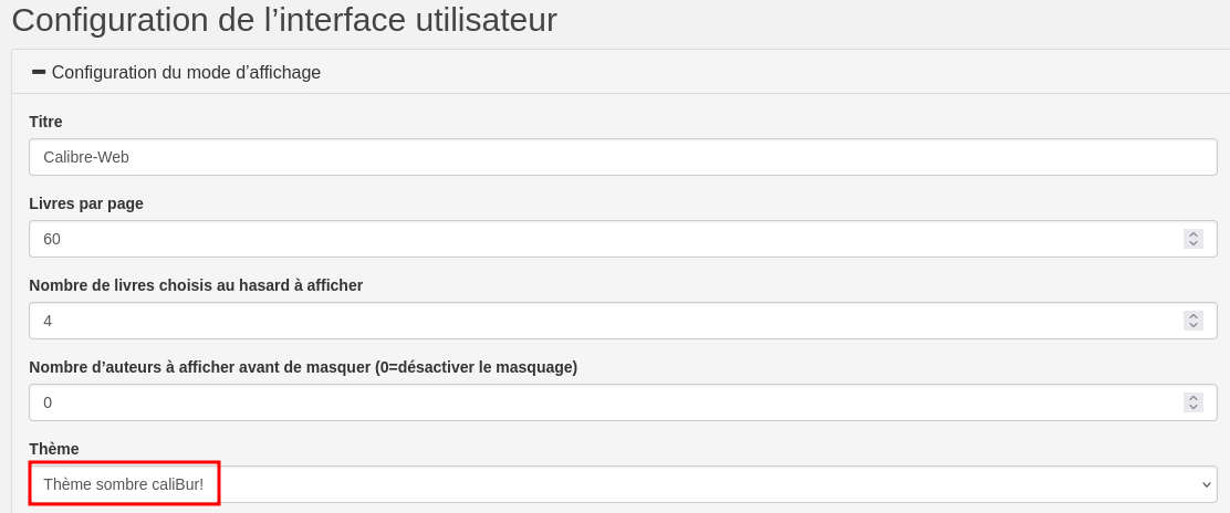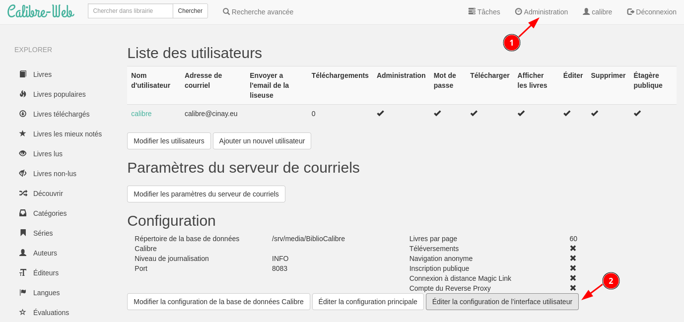 accès à la configuration https://calibre.rnmkcy.eu/config