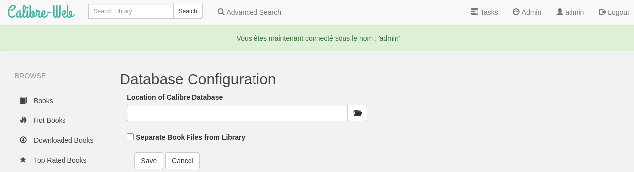 Se connecter en administrateur sur calibre-web