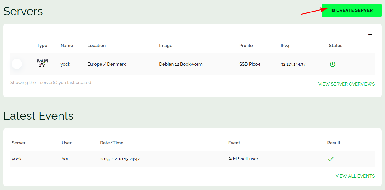 Cliquer sur “Create server”