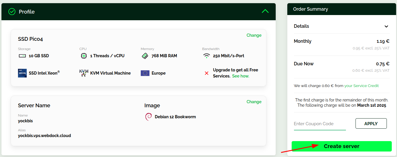 Ce post fait suite à une première création d’un VPS Pico4, voir le lien VPS webdock (Relais RustDesk)