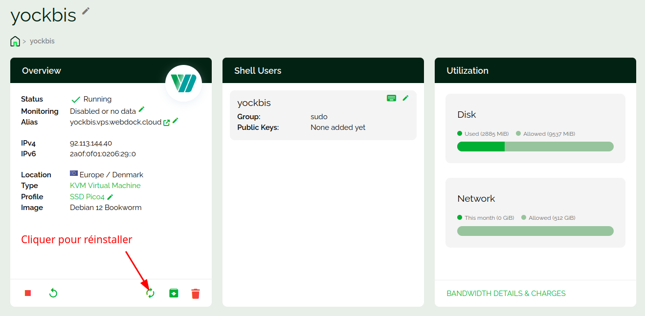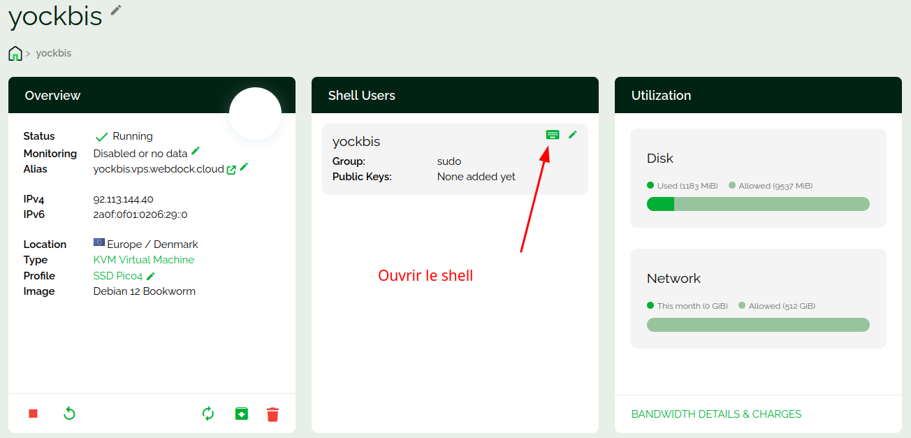 Se connecter sur un terminal web (https://webdock.io/en/dash/webssh/yock/yock)